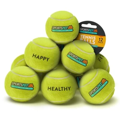 SPORTSPET Tennis Balls for Dogs Extra Bouncy Non Toxic Durable Long Lasting Floats (Tennis Standard (12 Pack)) (64mm)