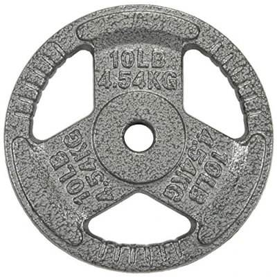 Made of solid cast iron with a 1-inch center hole fits any Olympic bar with diameter 1” or less; Can be used with 1” dumbbell bars too All plates features a durable, black baked enamel finish to prevent the plates from rust and corrosion without any unpleasant odor Each plate has 3 large openings with strips on them for easy grip. Labeled in both LB and KG for easy recognition Weight plates can be used to perform muscle strengthening exercises and endurance training, or to increase flexibility and balance Sold as single (NOT a pair) - 2. 5 Pounds, 5 Pounds, 10 Pounds, 25 Pounds, 35 Pounds, 45 Pounds