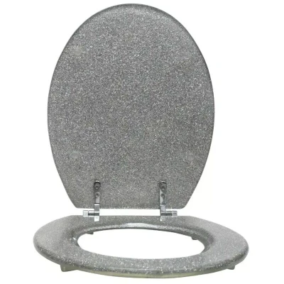 Spot on dealz 18" Stylish & Durable MDF Glitter Coating Toilet seat Add a Touch of Glamour to Your Bathroom Accessory Luxury (Silver)