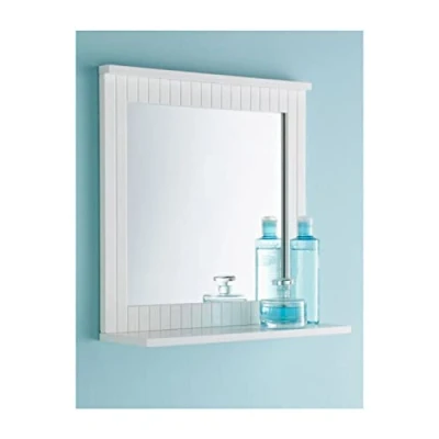 ManoManoGeneral description Welcome to the Gillhk White Bathroom Mirror, a stylish wall-mounted mirror featuring a clean lines design and a convenient shelf. This mirror is an excellent choice for enhancing the aesthetic of your bathroom or guest room, adding a modern touch to your home decor. Technical specifications Brand: Maine Color: White Material: Wood Item Weight: 2.2 KG Dimensions: W40 x D13 x H42.5 cm Usage This mirror can be used as a bathroom mirror or in a guest room, making it a versatile addition to your home. Its attractive design complements modern contemporary interiors. Other information Simple and fast self-assembly is required.