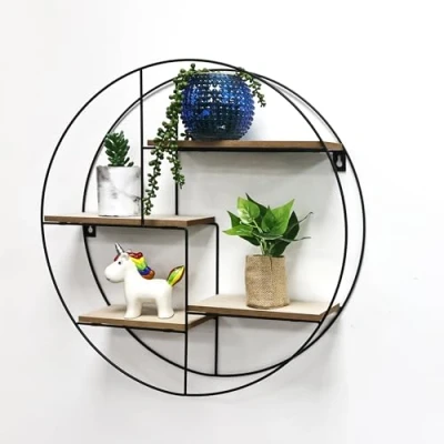 LOOKING FOR A ROUND METAL FLOATING SHELF? display shelving units? Round Multi Section Shelf? Then bring this stylish contemporary shelving unit to your home. STYLISH, STURDY & MODERN DESIGN: High-quality material with a black color frame finish. Create a stylish and practical shelving area in your home with this shelving unit. USES: Perfect for living rooms, children's rooms, or even hallways. You can turn it into the shelving unit that works for you. Very practical and useful shelving unit. EASY TO ASSEMBLE & CLEAN: You can easily clean it with a dry/wet cloth. DIMENSIONS & MATERIAL: Item dimensions: W50xD10cmxH50. Black Metal Wire Frame. 4mm Metal Wire, 6mm MDF Shelves.
