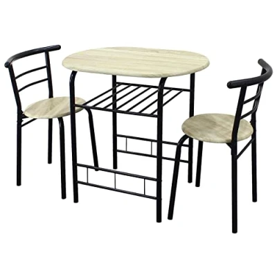 ManoManoGeneral description Welcome to the Modern Black and Oak Dining Table and 2 Chairs Set. This stylish 3-piece set includes a table and two chairs, perfect for your kitchen or dining room. The combination of black and oak finishes adds a contemporary touch to any space. Technical specifications Material: MDF 15mm Table dimensions: W80 x D53 x H74 cm Chair dimensions: W35 x D35 x H74 cm Chair's tube thickness: 25 x 0.8 mm Installation Easy to assemble - flat pack item Usage Suitable for kitchen, living room, and dining room Free-standing design with a metal frame Wooden top with a matte finish Suitable for indoor use