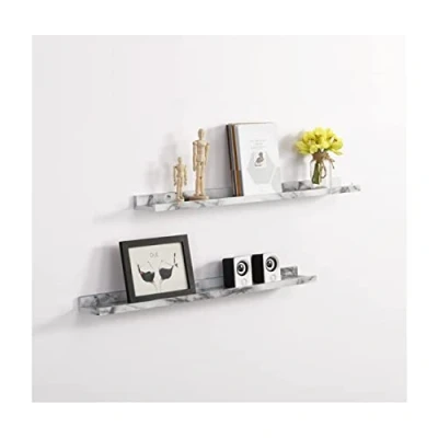 spot on dealz® set of 2 Photo Floating picture Ledge display wall shelf 48 cm length with Marble PVC finish wooden decorative hanging Shelves small Living room furniture (48 x 10cm)
