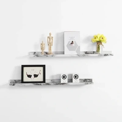 spot on dealz® set of 2 Photo Floating picture Ledge display wall shelf 80 cm length with Marble PVC finish wooden decorative hanging Shelves small Living room furniture (80 x 10cm)
