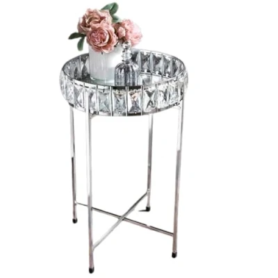 spot on dealz® Silver Crystal Mirrored Coffee Tables Round Bedside Table Removable Glass Top Tray Chrome Metal Side End Kitchen Living Room Home Decor
