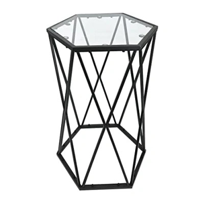 spot on dealz® Small Side Tables Living Room Occasional Hexagon Coffee Table Hallway Bedroom Sofa Glass Indoor Decor Decorative Black Console