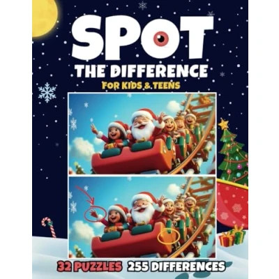 Spot the Difference Book: 32 Christmas Picture Puzzles with 255 Differences to Find for Kids and Teens