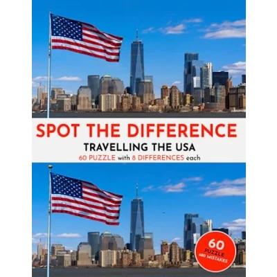 Spot the Difference Travelling USA 60 Picture Puzzles 8 Mistakes each Puzzle Book for Adults & Teens