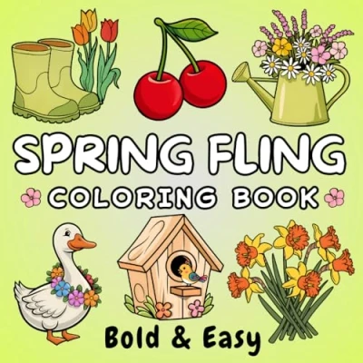 Spring Fling: Bold and Easy Coloring Book with Cozy Cute Designs for Adults Teens