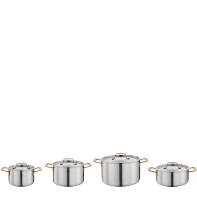 Spring Gourmet Pot Set, 4 Pieces, Multilayer Pots with Stainless Steel Lid, Oven Safe, Inner Scale, Cooking Diameter 16, 20, 24 cm, Stewing Pan 20 Rose Gold