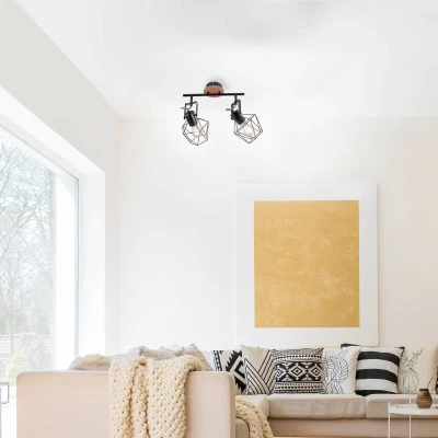SPRING LIGHTING Jaro Wire Twin Ceiling Spot Light Natural Wood 2xE27