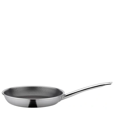 The pan with protective shield - The unique honeycomb coating made of stainless steel protects the pan that even with metal spatulas can be worked with! Gastronomy quality pan - The stainless steel pan with aluminium core offers excellent heat conductivity and is therefore appreciated in professional kitchens around the world. PFAS free non-stick coating - The 2-layer non-stick coating on a mineral basis ensures maximum abrasion resistance and an optimised anthracite effect. 100% PFAS-free. Ergonomic handle - Ergonomically shaped cold metal handle, no water penetration, permanently welded to the pan body. Suitable for all types of cookers - Suitable for all types of cookers including induction, oven-safe up to 250 °C