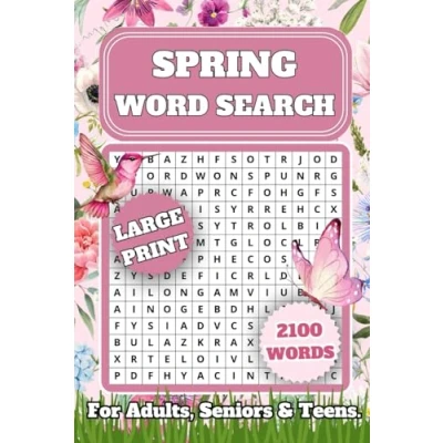 Spring Word Search: A New Fun and Relaxing Large Print Puzzle Book for Adults, Seniors Teens With Solutions! Anxiety Relief 100 Themed Finds 2100+ Words to Discover.