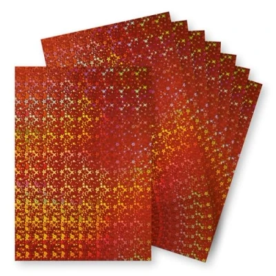 Springboard A4 Holographic Card Sheets 230gsm Cardstock for Making Compatible w/Die Cutting Machines Sparkly Craft Supplies Orange (Stars) 10 Pack