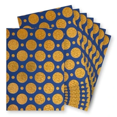 Springboard A4 Metallic Holographic Foil Design Card 230gsm Cardstock for Making Compatible w/Die Cutting Machines Vibrant & Interesting Crafting Gold Discs (Blue Card) 10 Pack
