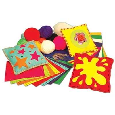 READY TO GO SEWING CRAFTS: Capture children’s curiosity with the Springboard felt cushions kids sewing kit. Each brightly coloured craft felt template is pre punched and ready to sew. EASY TO USE: This felt craft kit provides a great introduction to the basics of sewing and stitching, encouraging children to explore their creativity whilst improving their fine motor skills. MULTIPACK: Each felt sewing kit includes 40 pre punched square blanks that, once sewn together, make 20 padded cushions. Other accessories include plastic needles, padding, and wool. CAPTIVATING COLOURS: Children prefer bright, contrasting colours, so each childrens sewing kit includes felt fabric in a variety of bold hues, including green, red, blue, and yellow. Contents may vary per pack. SIZE: Forget scissors, measuring tape or rulers; each felt cushion template is pre cut for convenience and measures 15 x 15cm. Enjoy no waste activities with these accessible childrens crafts.