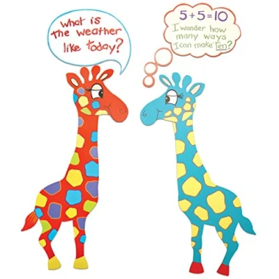 READY TO GO CRAFTS: Capture children’s curiosity with this 10 pack of friendly, giant card giraffes with jumbo speech bubbles, pre cut and ready for display. VERSATILE USE: Suitable for classroom educational displays, messages, and instructions, these high quality learning resources are ideal for making wall collages and eye catching signs. SUPER SIZED: Each activity pack contains 10 colourful jumbo giraffe shapes measuring 70 x 45 cm and 5 x A3 speech bubbles. Colours may vary per pack. INTERACTIVE: These shapes can become part of an interactive class activity, embellish the cutouts with sequins, buttons, paints, and other tactile fabrics. SAVE TIME: Forget scissors, measuring tape or rulers; these shapes are pre cut for convenience. Enjoy no waste activities with these ready to use crafts for kids.