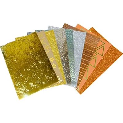 A stunning pack of gold, silver and bronze textured cards Pack contains 3 Metallic Embossed, 3 Glitter and 3 Foiled Sheets This pack is great for all art projects that need a special feel adding to them, including special cards, invitations and school projects Size: 210 x 197mm Colours may vary slightly.