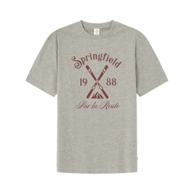 Springfield Men's Camiseta con gráfico ski Short Sleeve T Shirt, Gris Melange, XS