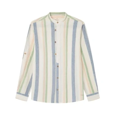 Regular fit mandarin collar shirt Embroidery at the bottom left in striped linen