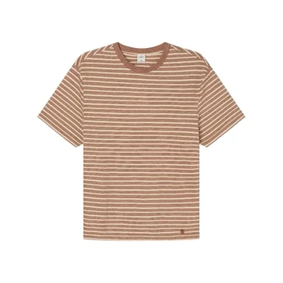 Loose fit short-sleeved T-shirt with a round neck Patterned stripe with texture and embroidered logo on the chest