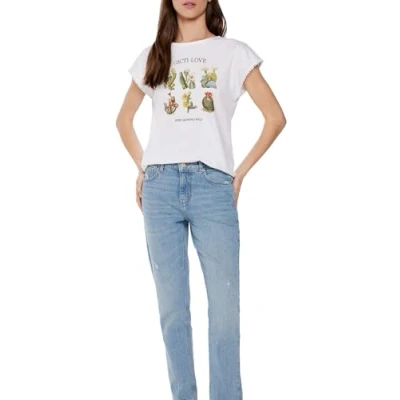 T-shirt with short dropped sleeves with lace bobble details round neck and placement graphic print and slogan on the front