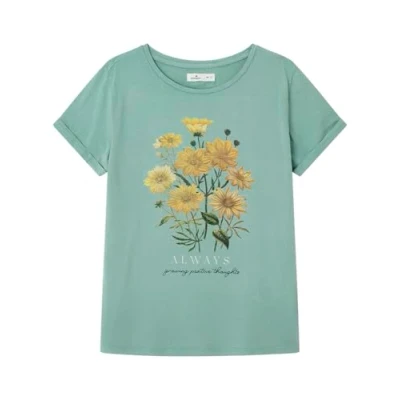 SPRINGFIELD Women's 1388340 Floral Graphic T Shirt, Green Lake, XS