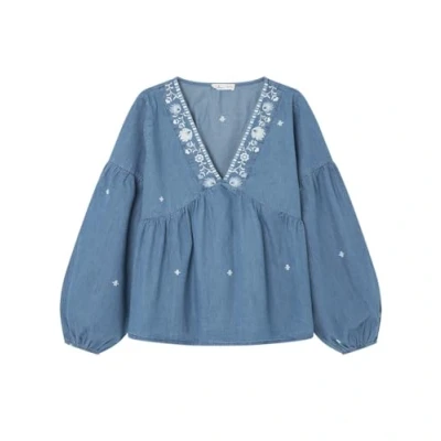 SPRINGFIELD Women's 6798407 Embroidered Denim Blouse, Smoky Blue, 36