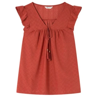 SPRINGFIELD Women's 9988645 Swiss Embroidery tie Front T Shirt, Brown Sugar Brown, M