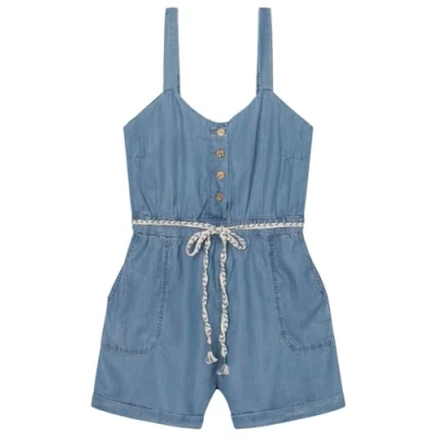 Strappy playsuit with low neckline at the front and back patch pockets