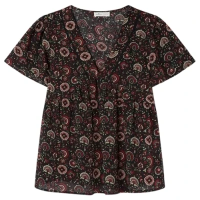 SPRINGFIELD Women's Blusa Bambula Con Encaje Y Cuello En V. Mangas Anchas Floaty lace Neckline Blouse, Black Standard, 36