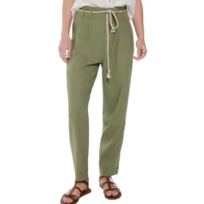 High rise Straight-leg ankle length trousers with side pockets Zip and hook fastening Belt loops and cord belt detail