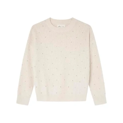 Textured jumper with long dropped sleeve round neck crystals on the front and ribbed neck cuffs and hem