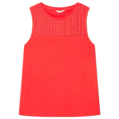 Sleeveless T-shirt with round neck and tonal crochet detail on the yoke