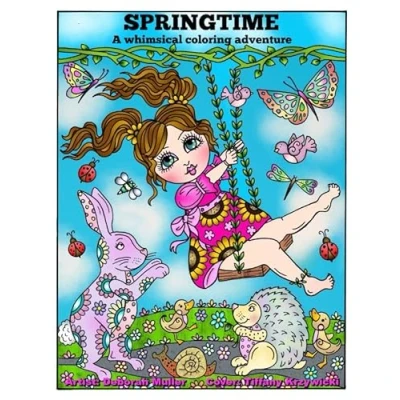 Springtime A Whimsical Coloring Adventure: Book by Deborah Muller. Whimsial animals, flowers and girls to color relax.