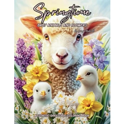 Springtime Baby Animals and Flowers: Aesthetic Grayscale Coloring Book: Adorable Blooming Spring Flowers for Stress Relief Mindfulness