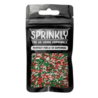 SPRINKLY Glimmer Strands (No E171) Red, White & Green 30g