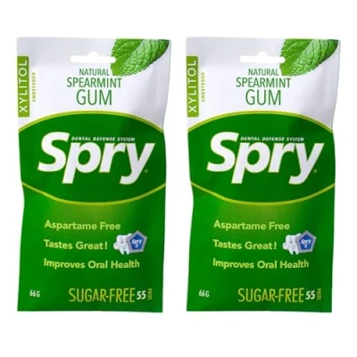 ON THE GO SPEARMINT GUM: Spry Spearmint gum will help to keep you breath smelling fresh and is moisturizing for your mouth. It’s the ideal freshen up gum that is also good for your teeth. Our gum is conveniently packed so you can stay fresh on the road, at work, or with your friends. The natural Spearmint gives a blast of cool, refreshing flavor, which provides a nice alternative to other aspartame free gum. IMPROVES TOOTH DENTAL CARE: Clinical studies have shown that the use of xylitol on a daily basis may reduce the risk of tooth decay. Our Spry gum is part of an essential dental defense system that may also help fight off cavities. Xylitol is a natural ingredient that inhibits contaminants' ability to stick to your teeth. When contaminants can't stick, they can't colonize. Ask your dentist and hygienist about the amazing benefits of xylitol. SUGAR FREE XYLITOL GUM: Instead of corn syrup or sugar our gum is made with 100% xylitol. Xylitol sweetener is derived from the fibrous parts of plants, similar in taste to regular organic sugar. We use no filler, flow agents or other sugar additives. Xylitol is a natural sugar that tastes just like real sugar and a great choice when looking for sweetners and sugar alternatives. NON-GMO GLUTEN FREE NATURAL GUM: Unlike other packs of gum, Spry gum uses natural ingredients that are Non GMO and gluten free. Spry Xylitol gum is 40% lower in calories than other mint gum that contain regular sugars, but contains the same sweetness. It can be a great choice for using in foods and snacks, keto friendly foods or used in sugar support supplements. FIGHTS BAD BREATH: Use daily after meals and between normal brushes. For best results use Spry Spearmint Gum with Spry Coolmint Toothpaste and Spry Coolmint Oral Rinse for a fresh breath.Spry Spearmint Chewing Gum can help prevent bad breath caused by a poor pH balance, dry mouth, and the lack of saliva. Chewing xylitol gum after meals can increase your saliva output and help neutralize the acids that cause bad breath.