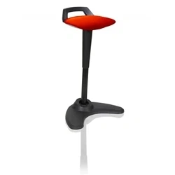 Distinctive positive angled design. Grab handle & kicker back support. Dual arm foot stability. Extra length gas lift. Pivoting rocking feature. Softly upholstered cushioned seat.