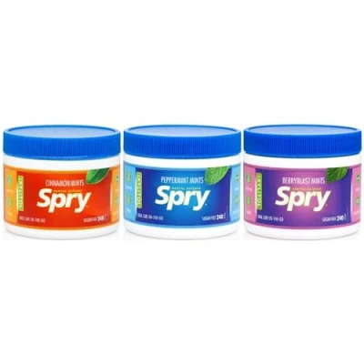 SUGAR FREE HARD CANDY: Instead of corn syrup or sugar our peppermint candy mints are made with 100% xylitol. Xylitol sweetener is derived from the fibrous parts of plants, similar in taste to regular organic sugar. We use no filler, flow agents or other sugar additives. Xylitol is a natural sugar that tastes just like real sugar and a great choice when looking for sweeteners and sugar alternatives. GREAT TASTE PEPPERMINT CANDY: Our sugar free mints are flavored with all natural ingredients to create a great all natural flavor that is irresistible and ideal for getting rid of bad breath. Our Spry mints are great breath fresheners for the office, in the car, after dinner mints, or to enjoy with friends. BAD BREATH TREATMENT: Use daily after meals and between normal brushes. For best results use Spry Mints with Spry Toothpaste and Spry Oral Rinse for a fresh breath. Give your children Spry sugar free peppermint hard candy instead of sugar-sweetened mints. No need to tell them it is good for their teeth. Make our mints candy your go-to xylitol candy! DENTIST RECOMENDED: Clinical studies have shown that the use of xylitol on a daily basis, may reduce the risk of tooth decay. Our spry gum is part of an essential dental defense system that may also help fight off cavities. Sweetened with 100% xylitol to help hydrate dry mouth and provide in-the-go oral care. Ask your dentist and hygienist about the amazing benefits of xylitol. LOW CALORIE & NON-GMO SUGARLESS CANDY: Our breath mints for bad breath are vegan safe, gluten free, non-gmo and sugar-free, No Artificial Colors, No Artificial Flavors! Natural ingredients eliminate the need to worry about eating aspartame or other chemicals