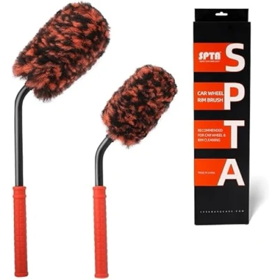 SPTA 2 Pcs Angled Wheel Cleaning Brushes, Metal Free Synthetic Wool Tire Brush, Flat Spoke Car Brushes and Rim Automotive Detail