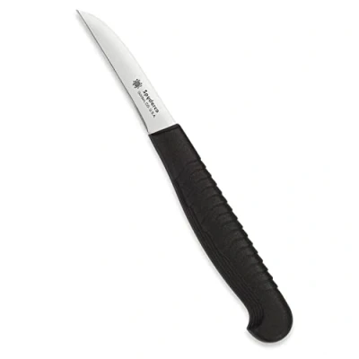 An Improved Classic: Spyderco's involvement in kitchen knives dates back to the early 1980's. After being discontinued a number of years ago, they are now back by popular demand and better than ever. Made for the Kitchen: It is a great tool of choice for paring, carving decorative garnishes, and other food preparation chores that require precise control. Superior Quality: The K09 Mini Paring Knife's 2.25-inch blade has a straight cutting edge and a sharp point that provide extreme control during detailed cutting tasks. Ergonomic: Its Durable black polypropylene plastic handle is injection molded directly onto the tang of the blade and features a distinctive "stepped" texture pattern that offers both comfort and control during use. Superior Quality: It features a PlainEdge MBS-26 Stainless Steel blade, ground exceptionally thin and meticulously heat treated for optimal cutting performance., Weight: 0.05 pounds, Manufacturer: Spyderco