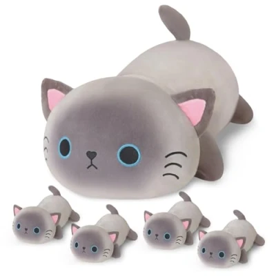 5 In 1 Siamese Cat Soft Toys: The giant siamese cat stuffed animal comes with a surprise in her belly, 4 cute baby siamese cat that can be removed through the zipper opening on mommy’s tummy. Siamese cat toys are quiet and honest friends to accompany kids to fall asleep during bedtime Safe Material: Cute siamese cat plush toy is made of super soft short plush and PP cotton filling, safe and natural material, the hand feels delicate and comfortable, and gives you a better skin touch feeling Wonderful Plush Siamese Cat Gifts: The stuffed siamese cat toy is a sweet gift for Birthdays, Christmas, Children's Day, Valentine's Day, Halloween, Thanksgiving, and other memorial days. You can choose these siamese cat plushies to express your concern for your family and friends Multi-Purpose: Siamese cat plushie appeals to all ages kids to adults can be used as a hugging pillow, nap pillow, back pillow and lumbar pillow. You can also put it in the living rooms, bedrooms, children's rooms or offices to add a warm atmosphere Warm Tips: SQEQE plush pillow toy run through multiple inspections and are designed with quality in mind. Note: It may take 1-2 days for the vacuum-packed fat siamese cat plush doll to restore its original appearance, please be patient, Manufacturer: SQEQE