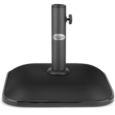 Secure your garden parasol with this 11kg Square Parasol Base from Christow. The base is an ideal weight if you’re using your parasol with the added stability of a table. If you plan to use it without a table, we recommend our heavier 25kg parasol base (sold separately). Weatherproof Construction The base is made from heavy-duty compound concrete with a rust-resistant steel tube to hold the pole of your parasol in place. Because it’s weatherproof, it’s incredibly low maintenance. Simply spray it with a hose when watering your garden to clean it. 3 Adapters To Fit Any Pole The base comes with 35mm, 38mm and 48mm pole adapters which can be placed inside the tube to secure almost any parasol. Using the correct adapter for the diameter of your pole will ensure your parasol doesn’t wobble and stays securely upright in the wind. Easy To Assemble No tools are required to assemble the base and it can be set up in minutes. Simply screw the steel tube to the base, pop the relevant adapter