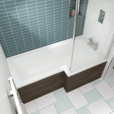 The Nuie Right-Handed Square Shower Bath is perfect for small bathrooms. It offers the comfort of a bath with the practicality of a shower, thanks to its spacious square design. Made from sanitary grade acrylic, it's easy to clean and hygienic. The bath is undrilled for customizable faucet placement and includes a leg set for hassle-free installation. It works with modern bath screens, an effective alternative to shower curtains. A wide range of bath panels is available for decorative or matching purposes, sold separately. During installation, handle fittings with care. It comes in various sizes and includes a 5-year guarantee, provided installation and use follow instructions. Ideal for compact spaces, this bath combines sleek aesthetics with functionality.. Nuie 1600mm White Right Handed Square Shower Bath Acrylic