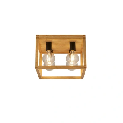 Square Woven Bamboo Wood 4 Light Ceiling Flush