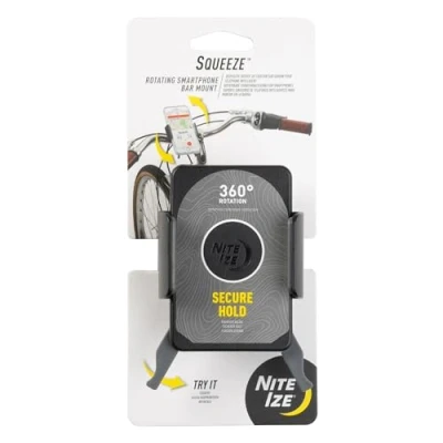 Quick & Secure Phone Mounting: This bike phone mount offers instant attachment and a secure grip for your phone on any adventure; the easy-to-squeeze levers and grippy arms help you place and hold your phone securely 360 Degree Phone Holder Rotation: Effortlessly switch between portrait and landscape with this rotating smartphone bar mount, ensuring optimal viewing angles Universal Cell Phone Fit: This bike phone mount fits most standard and plus-sized phones (2.3" - 3.6" wide), with or without a case Tool-Free Mount Attachment: This bike mount phone holder features tool-free mounting with inner continuous force springs in the squeeze clamp for a secure and easy-to-use phone mount About Nite Ize: Our inventor-driven products organize your life, protect your gear, light your way, and creatively solve everyday problems