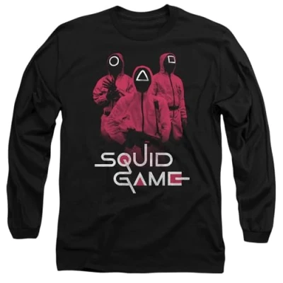 SQUID GAME MENS LONG SLEEVE T-SHIRT: Crafted from premium ringspun cotton, our long sleeve T-shirts are the epitome of timeless style; embrace your individuality with a look as distinct as you are; created for everyday wear, our long sleevetees feature a breathable all-season mid-weight weave, ensuring comfort in a versatile tagless design; beyond ordinary, this long-sleeve tee is built to last VERSATILE FIT: Whether you're an icon, influencer, or a myth in the making, discover a facet for every version of yourself; pre-shrunk for an optimal fit, our long sleeve tees are meant to be worn daily; with a crew neckline, long sleeves, regular silhouette, and straight hemline, this top is designed for comfort; casual and classic, it's the optimal choice for any occasion; only good vibes here OFFICIALLY LICENSED: Discover the optimal style with our officially licensed pop culture designs; created by our in-house graphic art team, each piece is a proud representation of craftsmanship, meticulously designed and printed in the UK; showcase your favorite characters and themes, making every wear a statement of your unique style EFFORTLESS CARE: From school and work to hanging out with mates, our classic tee is tailored for the real world; no complicated care instructions, simply wear, wash, repeat; launder cold and tumble or hang dry to maintain the longevity of your new favourite shirt GREAT GIFTING OPTION: great for sharing the love, our thoughtfully crafted and vividly rendered long sleeve T-shirts are great for any superfan; kit your loved ones out for their next birthday, holiday, themed event, Christmas or special occasion