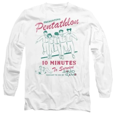 Squid Game Pentathlon Race Comic Unisex Long Sleeve T Shirt, White, XX Large