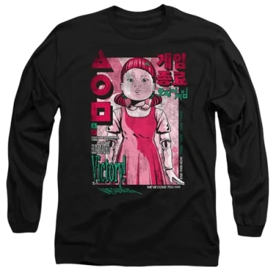 SQUID GAME MENS LONG SLEEVE T-SHIRT: Crafted from premium ringspun cotton, our long sleeve T-shirts are the epitome of timeless style; embrace your individuality with a look as distinct as you are; created for everyday wear, our long sleevetees feature a breathable all-season mid-weight weave, ensuring comfort in a versatile tagless design; beyond ordinary, this long-sleeve tee is built to last VERSATILE FIT: Whether you're an icon, influencer, or a myth in the making, discover a facet for every version of yourself; pre-shrunk for an optimal fit, our long sleeve tees are meant to be worn daily; with a crew neckline, long sleeves, regular silhouette, and straight hemline, this top is designed for comfort; casual and classic, it's the optimal choice for any occasion; only good vibes here OFFICIALLY LICENSED: Discover the optimal style with our officially licensed pop culture designs; created by our in-house graphic art team, each piece is a proud representation of craftsmanship, meticulously designed and printed in the UK; showcase your favorite characters and themes, making every wear a statement of your unique style EFFORTLESS CARE: From school and work to hanging out with mates, our classic tee is tailored for the real world; no complicated care instructions, simply wear, wash, repeat; launder cold and tumble or hang dry to maintain the longevity of your new favourite shirt GREAT GIFTING OPTION: great for sharing the love, our thoughtfully crafted and vividly rendered long sleeve T-shirts are great for any superfan; kit your loved ones out for their next birthday, holiday, themed event, Christmas or special occasion